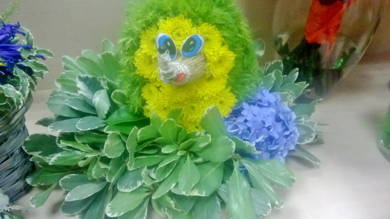 Состав: Хризантема, гвоздика зеленая, гортензия, зелень (питтоспорум.)